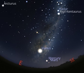 By 4am, Venus breaches the ESE vista…..it’s kind of inspiring if you have an uninterrupted view of the horizon and I find a great start to the day. Venus is followed by Mercury by 4.15am and if you again have that uninterrupted horizon, Mars can possibly be glimpsed sitting 10 degrees up leading up to 5am, but only by the end of the week.